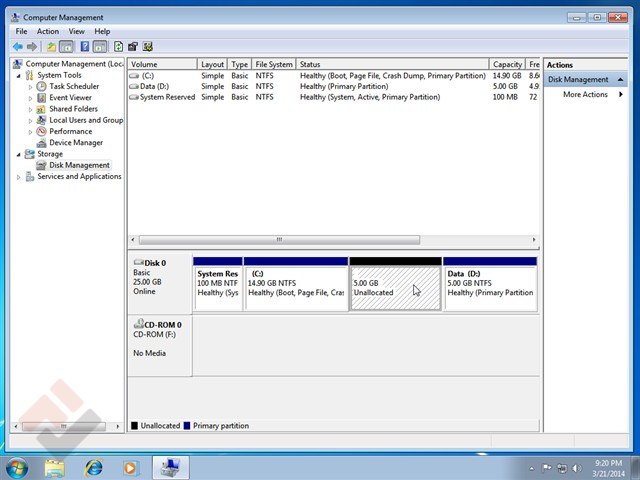 Cách chia ổ cứng Windows không cần phần mềm