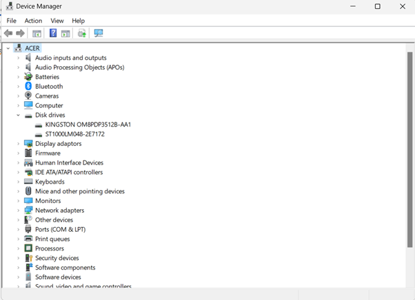 Bước 2: Nhấp đúp chuột vào Disk drivers, bạn sẽ thấy tên của ổ cứng đang dùng.
