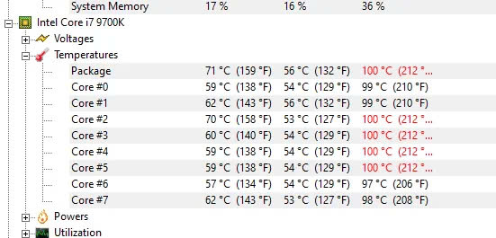 Bước 3: Xem nhiệt độ hiển thị theo từng lõi (Core 1, Core 2,…).