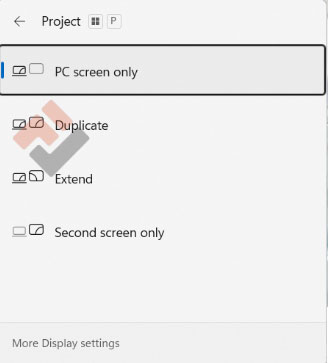 - Nhấn tổ hợp Windows + P → xuất hiện các lựa chọn hiển thị: