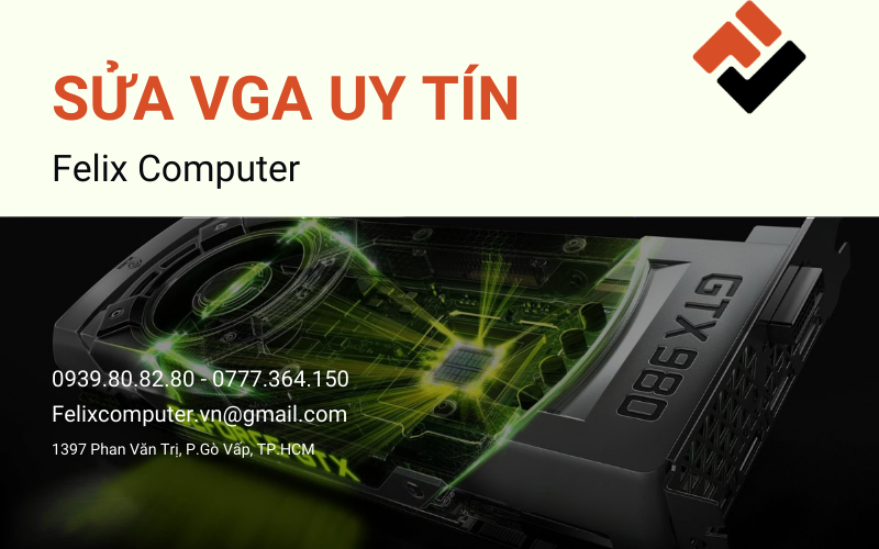 Nếu bạn đang gặp sự cố với card đồ họa (VGA) như không lên hình, sọc màn, không nhận driver hoặc hoạt động kém ổn định, đừng để tình trạng kéo dài làm ảnh hưởng đến công việc và giải trí. Hãy liên hệ ngay Felix Computer qua hotline 0939.80.82.80 – 0777 364 150 để được tư vấn và hỗ trợ kỹ thuật nhanh chóng. Với dịch vụ Sửa VGA uy tín, đội ngũ kỹ thuật viên giàu kinh nghiệm sẽ kiểm tra, xử lý chính xác lỗi và khôi phục hiệu suất cho card đồ họa của bạn.