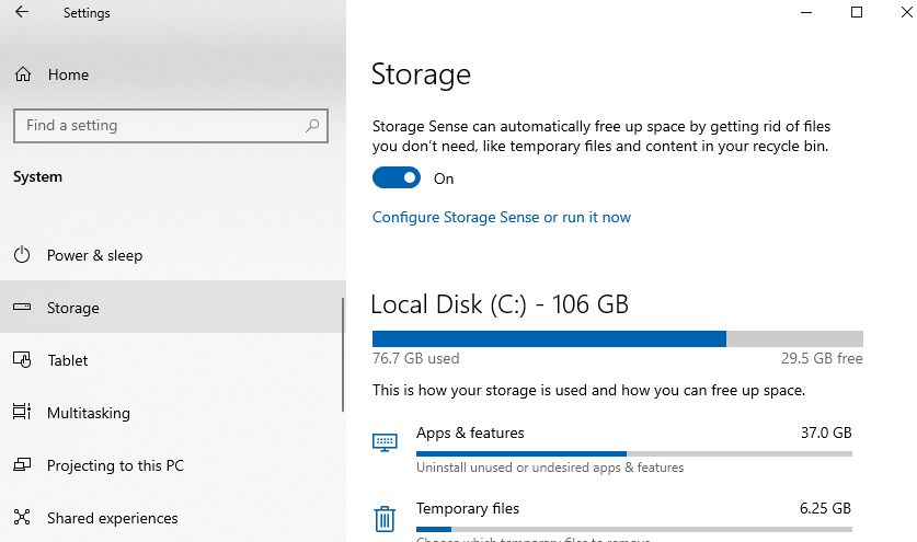 Bước 2: Bạn bật tính năng Storage Sense để Windows tự động dọn rác định kỳ cho bạn.