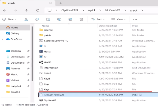 Tiếp theo, bạn mở folder License trong thư mục crack. Mở ổ đĩa C -> mở Program Files -> Optitex -> Optitex 21 -> App -> mở tệp LicenseManager
