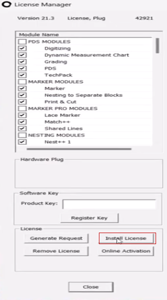 Tiếp theo các bạn nhấn chọn file License.lis và nhấn Open. Sau đó nhấn Close