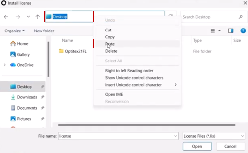Quay lại giao diện Install license và paste đường dẫn vào ô địa chỉ -> Enter