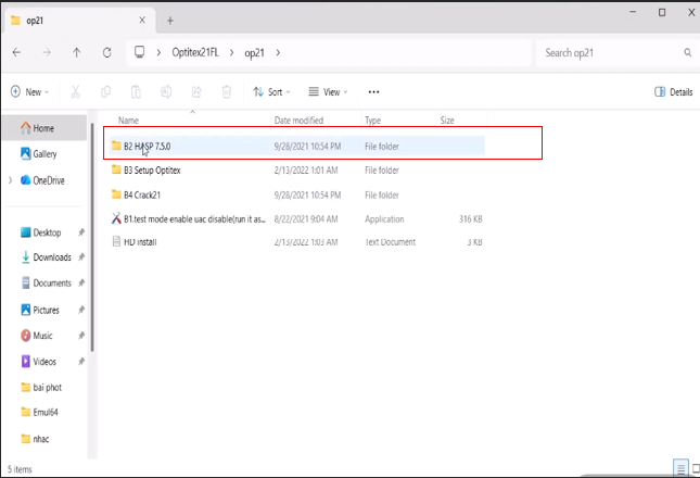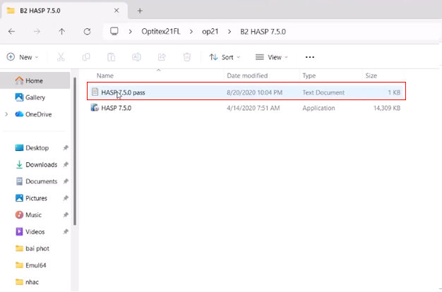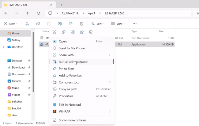 Mở lại folder Optitex21FL -> op21 -> B2 HASP 7.5.0 -> chọn file HASP 7.5.0, chuột phải và chạy với quyền Admin.