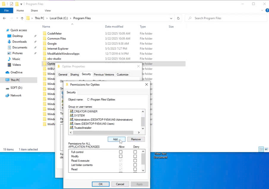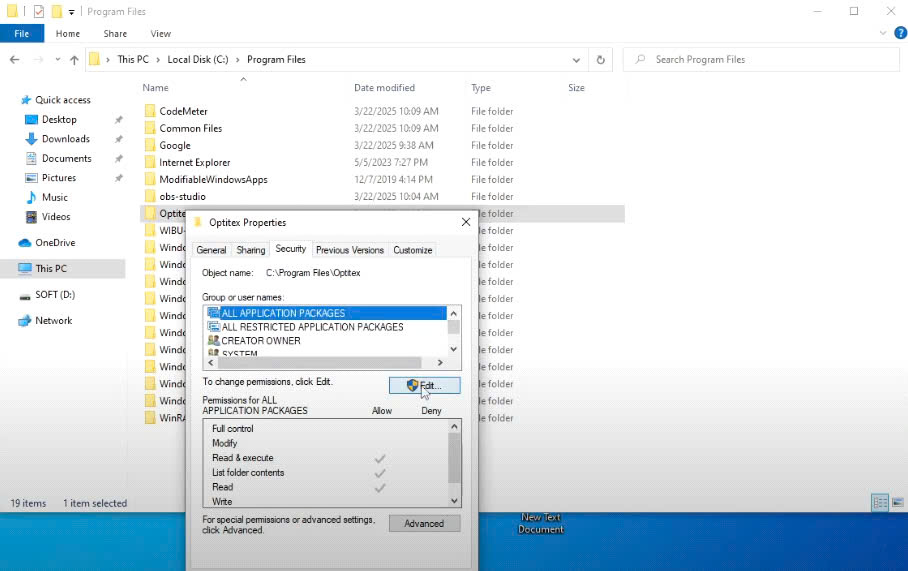 Bấm chuột phải vào thư mục Optitex chọn Properties – Edit