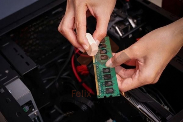 3. Vệ sinh chân RAM và cổng tiếp nhận
