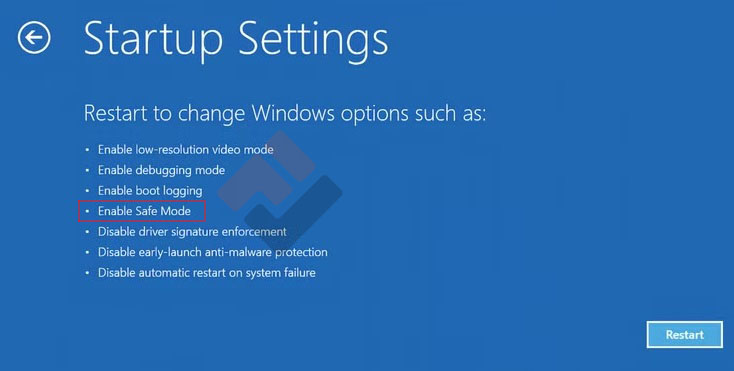 Chọn Advanced options → Startup Settings → Safe Mode
