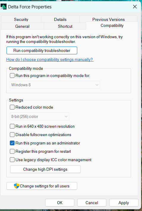 Chọn tab Compatibility