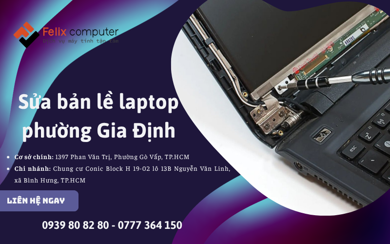 Nhu cầu Sửa bản lề laptop phường Gia Định ngày càng tăng, đặc biệt với những người sử dụng laptop thường xuyên. Felix Computer cung cấp dịch vụ chuyên sâu, tập trung vào các giải pháp như hàn bản lề laptop giá rẻ phường Gia Định, thay thế linh kiện và phục hồi kết cấu máy.