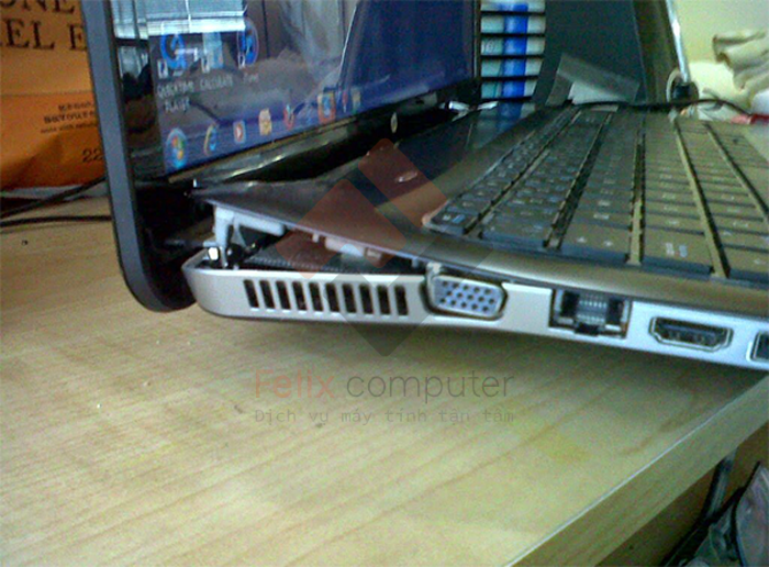 - Nứt vỏ laptop do lực kéo từ bản lề